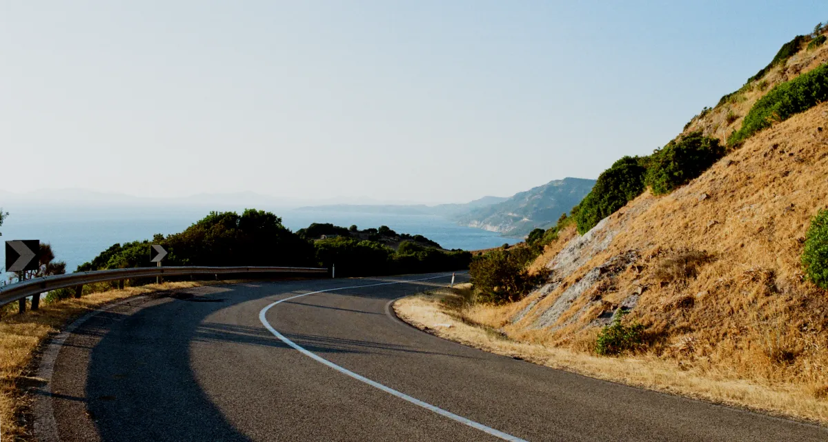 Una strada poco battuta, che si apre tra scorci incredibili sulla costa, dove ogni curva sembra sospesa tra terra e mare.